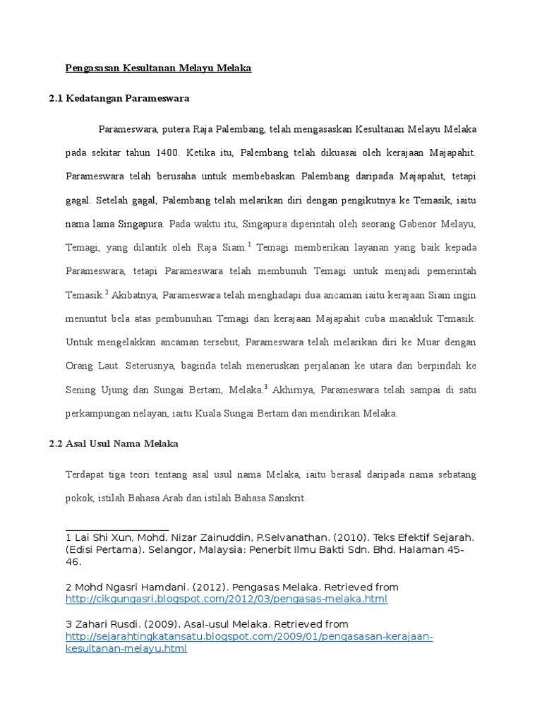Pengasasan Kesultanan Melayu Melaka Pdf
