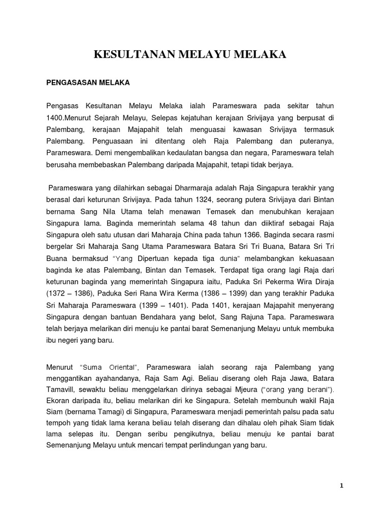 Doc Sejarah Kesultanan Melayu Melaka 1 Kim Tae Yeon Academia Edu